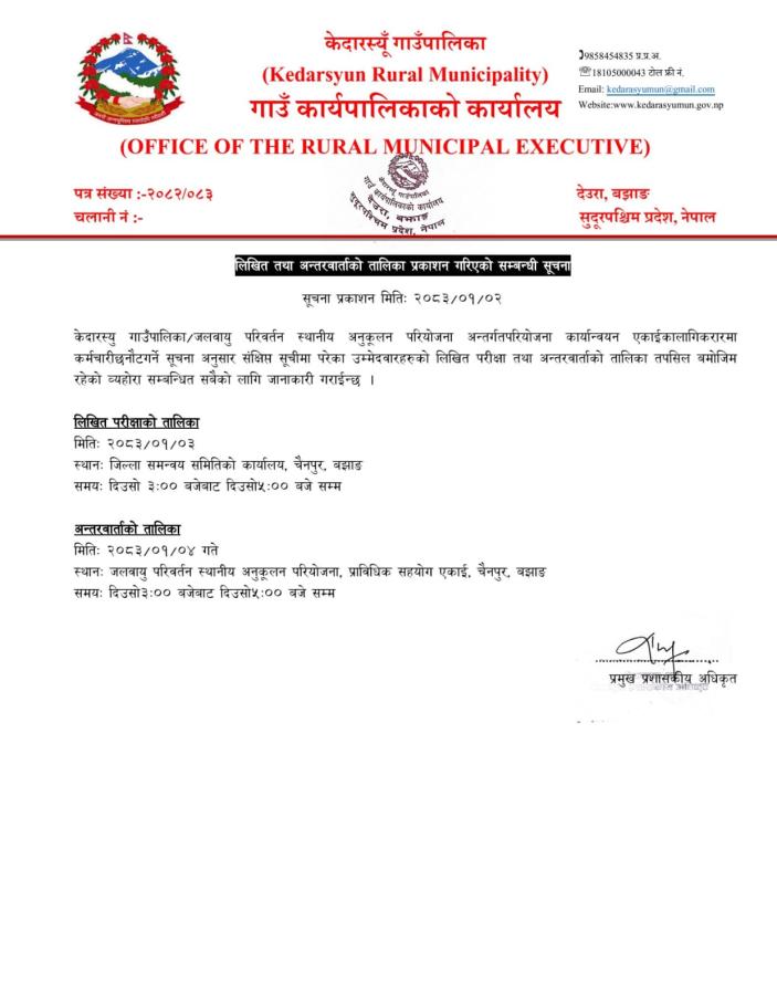» लिखित तथा अन्तरवार्ताकाे परिक्षा तालिका प्रकाशन सम्बन्धी सूचना ।