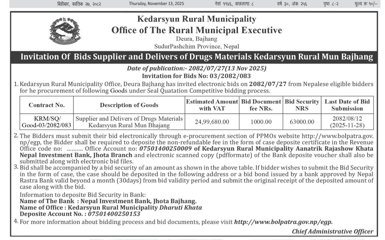 सार्वजनिक खरिद/बोलपत्र सूचना