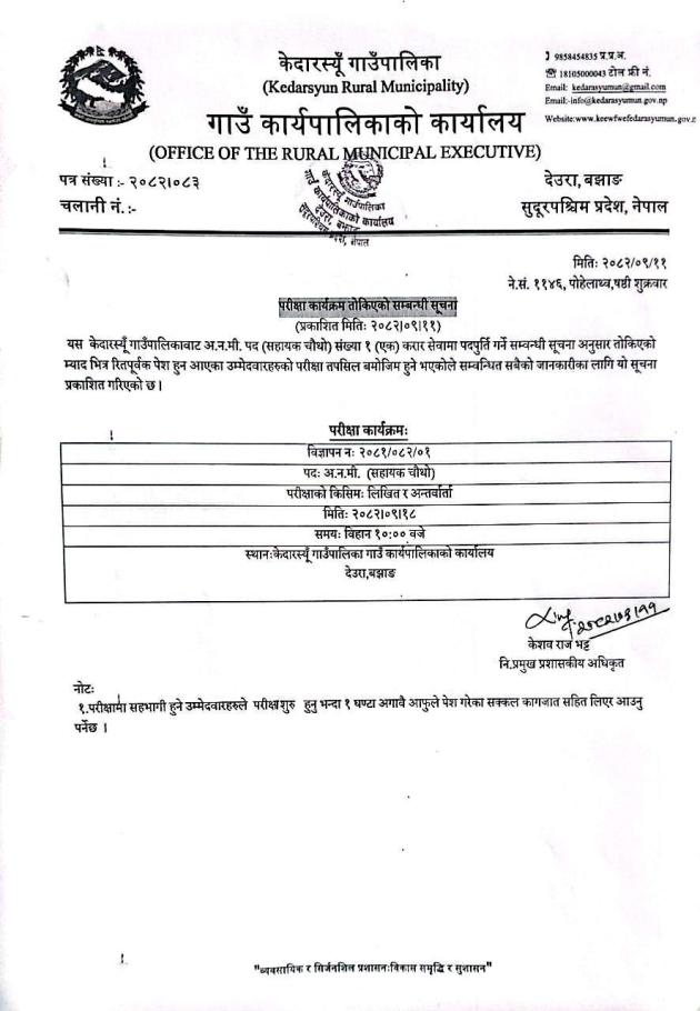 परीक्षा कार्यक्रम तोकिएकाे सम्बन्धी सूचना ।