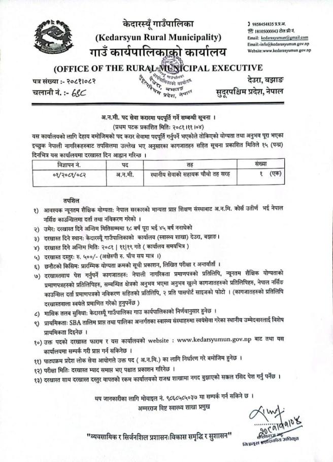 केदारस्यु गाउपालिकाको विशेषज्ञ चिकित्सक सम्बन्धि राजपत्र २०८१